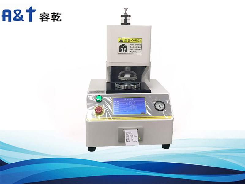 本機采用液壓遞增原理,將設置的參數形成電信號由微電腦控制電機形成傳動壓力,檢測系統記彔試樣破裂時自動保留最大破裂強度值。將試樣置于膠模上,通過氣壓將試樣夾緊,然后電機均勻地施加壓力,使試樣與膠膜一起自由凸起,直至試樣破裂為止,施加液壓最大值為試樣耐破強度值。